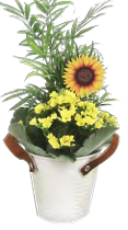 The Midnight Metal Garden features a sleek metal container with leather strap handles, combining modern design with rustic charm. This clean-lined fall arrangement offers a sophisticated blend of seasonal foliage and textures, making it an exceptional centerpiece for Thanksgiving. Thoughtfully planted for both style and functionality, it serves as a memorable gift that enhances any table setting with autumnal elegance.